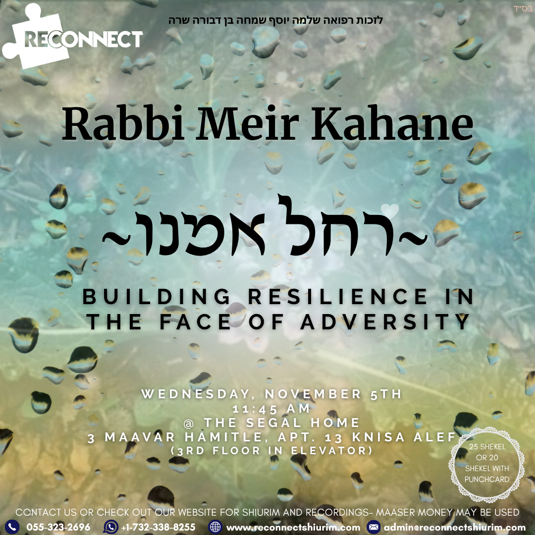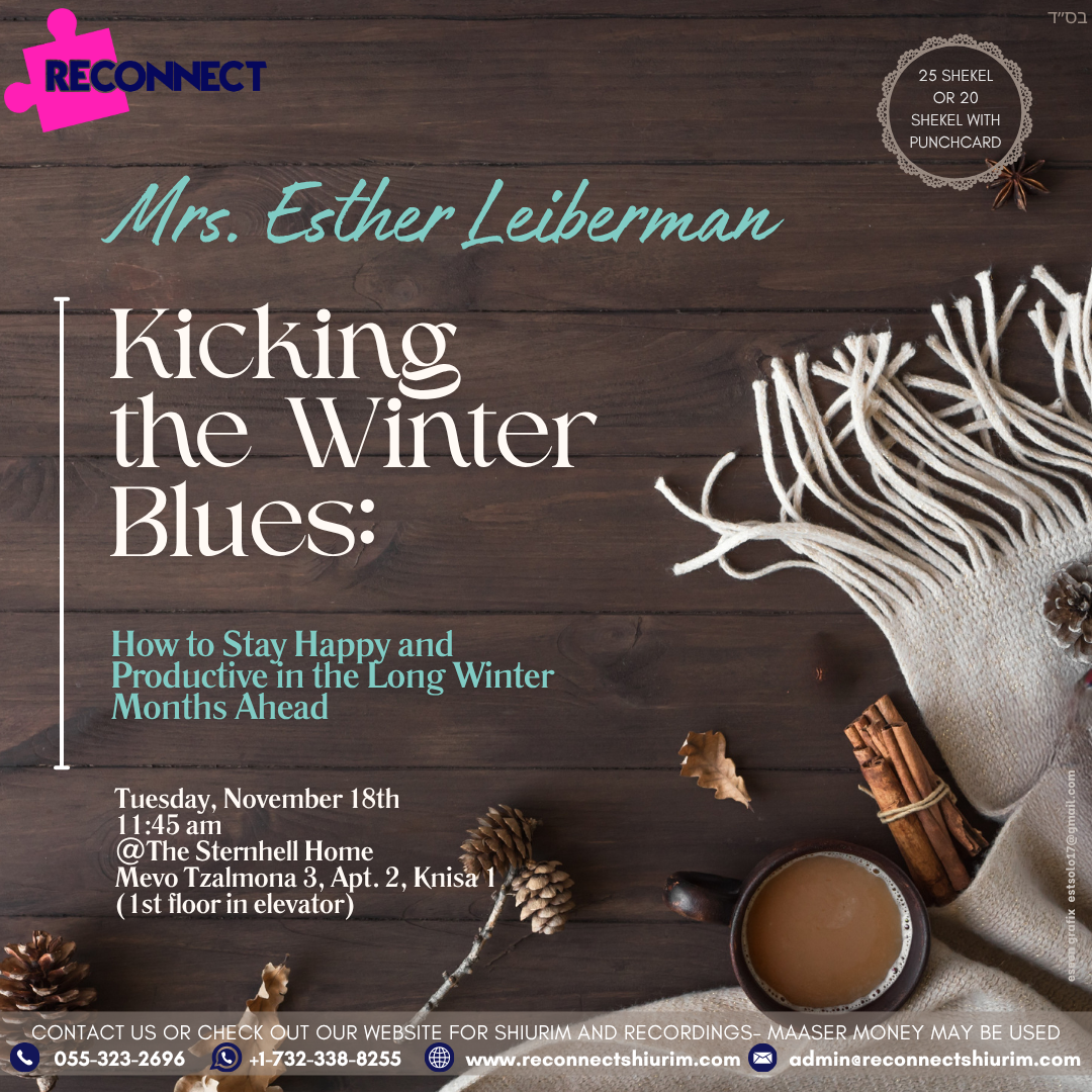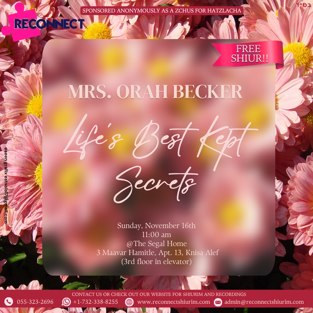 Ever since I landed in Eretz Yisroel I’ve been thoroughly enjoying attending Reconnect shiurim and events, meeting new people, and having great experiences. I feel so fortunate to now be actively working for this fantastic organization with other inspiring and growing individuals.