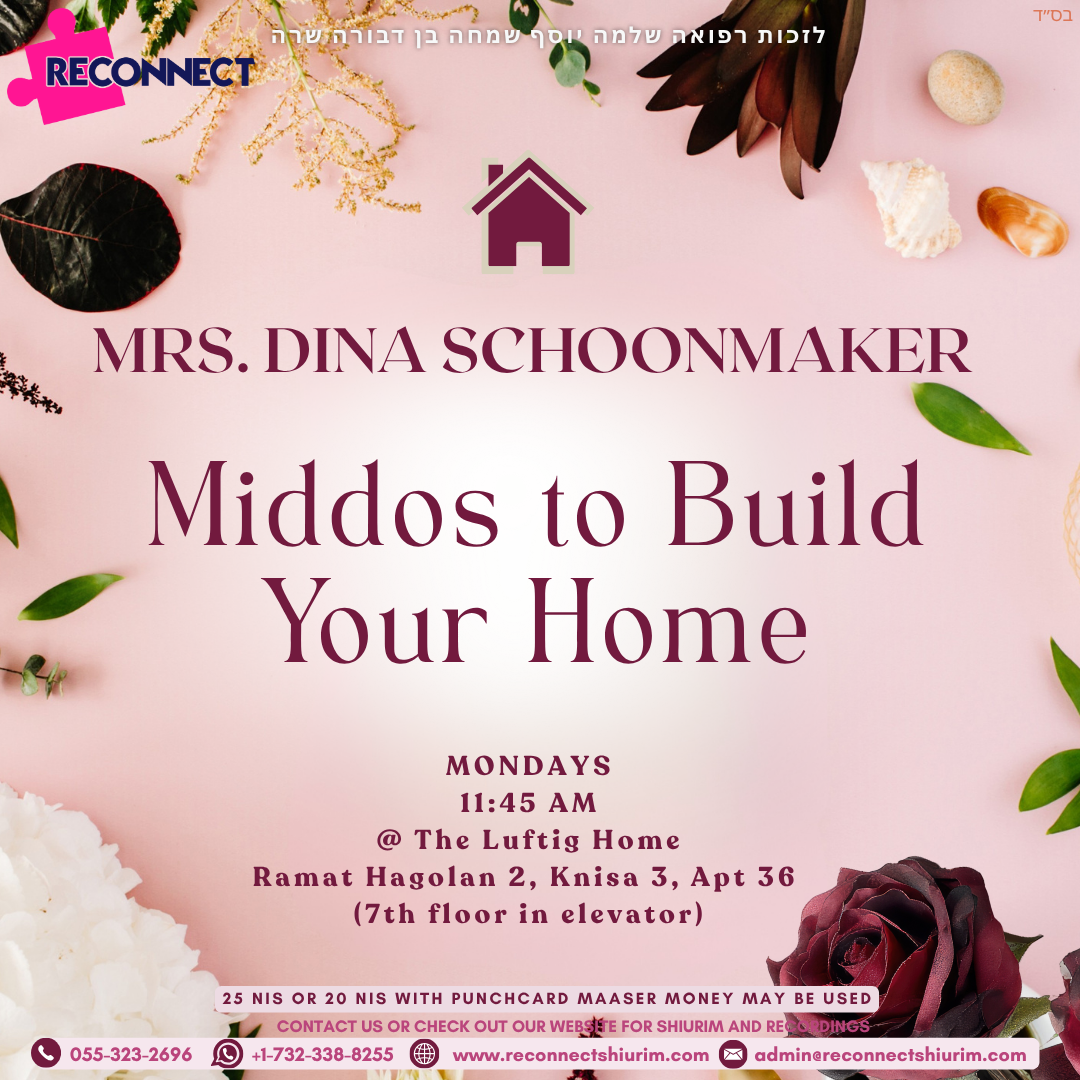 Reconnect's shiurim give our community's ladies the tools they need to build their beautiful homes.